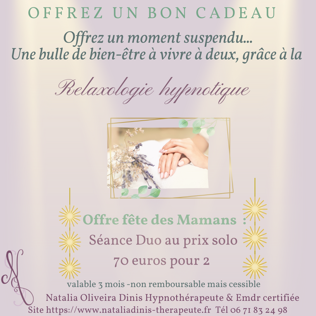 #FeteDesMeres #Relaxologie #CadeauBienEtre #DuoRelaxation #HypnoseDouce #MamanEtMoi #OffrirDuTemps #SeFaireDuBien #ParentheseZen #TherapieDouce #InstantPrecieux #NataliaOliveiraDinis