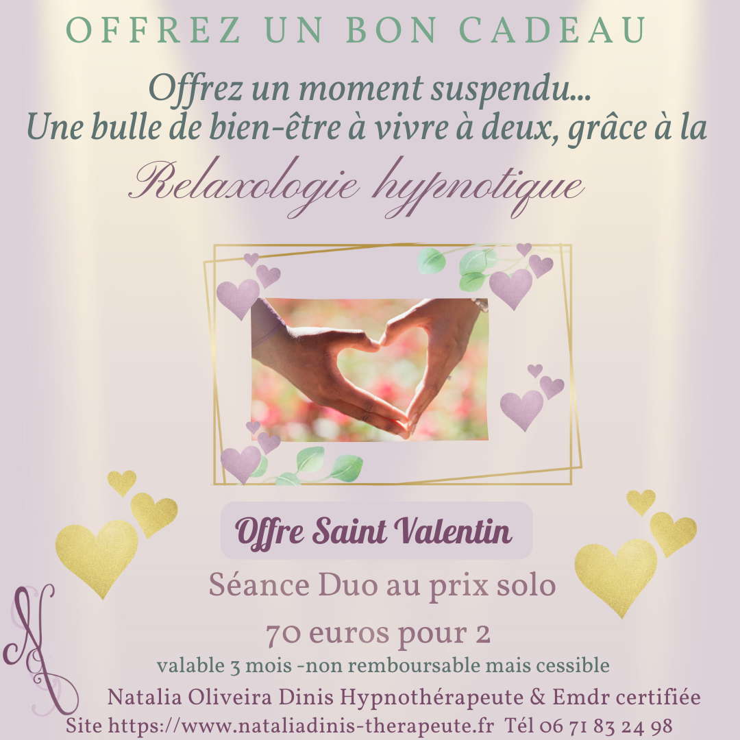 Carte cadeau valable 3 mois -non remboursable mais cessible -Séance d'une heure à 70 euros pour 2 .En cabinet ou Visio .